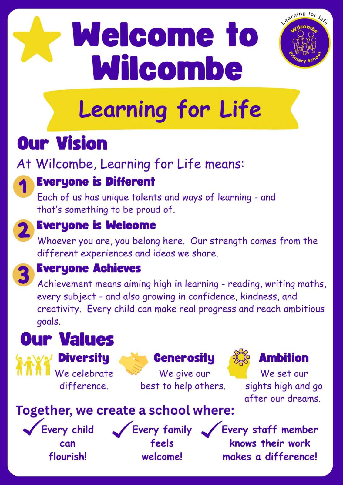 Respect and Resilience are essential to ensuring everybody thrives in our school. All members of our school community come together to ensure that Wilcombe is a safe place for lifelong learners to thrive.